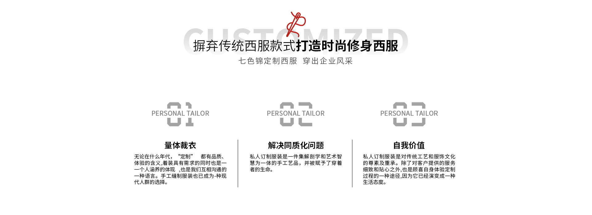 - 安徽七色錦服飾有限公司成立于2011年07月19日,公司位于安徽省合肥市包河工業區延安路17號,廠房面積約5000平方米,投資資金1000萬元。作為一家集服裝設計,生產,服務于一體的中、檔次高的西裝、襯衫企業,服務專業、顧客滿意”的經營宗旨、以“客戶為先、市場導向”為經營理念更好的服務于廣大消費者、依靠高超的技術,先進的設備,嚴格的管理,穩定的產品質量,精細的制作工藝,周到的客戶服務贏取了廣消費者的信賴和好評.各類服裝服飾專業技術人員100多人,各類先進的生產設備150多臺,具有設計、制造各類服裝服飾的能力。公司是以從事中、檔次高的西服、襯衫、西褲、西裙、大衣、領帶、皮鞋等設計、生產、銷售一體化為主,為證券、單位、團體、酒店、學校等企事業單位定制專業的服飾公司并通過了ISO19001:2015質量體系認證、ISO14001:2015環境體系認證、OHSAS18001:2007職業健康安全管理體系等認證...